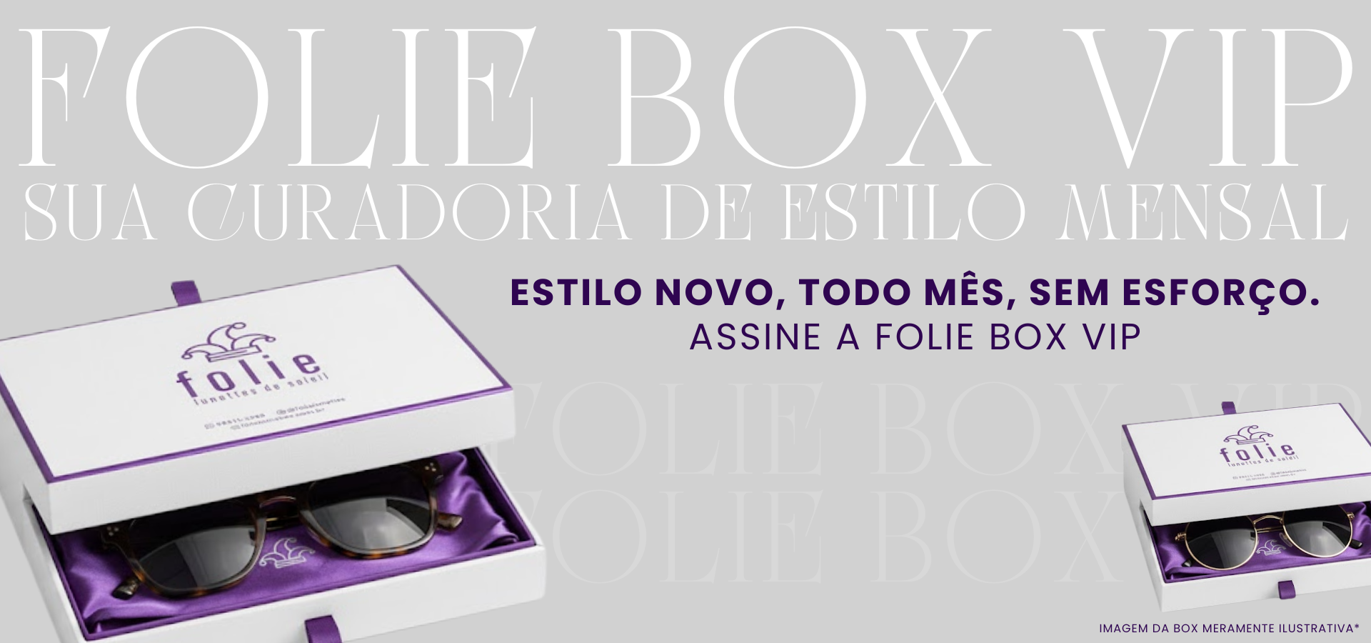 Cansada de usar os mesmos óculos? A Folie Box VIP é o serviço que redefine a sua relação com a moda solar. Criado para nossas clientes mais exigentes, este clube de assinatura garante que você receba um novo modelo Folie, cuidadosamente selecionado, diretamente na sua casa, todos os meses.